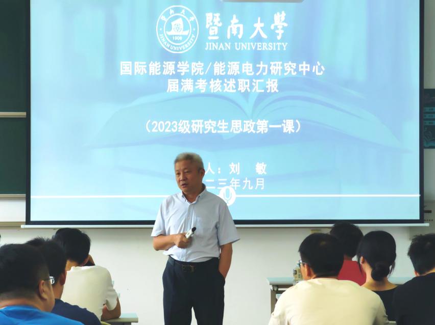 2023年9月11日上午,能源电力研究中心执行主任、国际能源黄色漫画执行院长刘敏教授在珠海校区教学楼406教室为能源电力研究中心2023级研究生新生主讲了一堂精彩纷呈的思政第一课。刘敏教授向研究新生们介绍了能源电力研究中心、国际能源黄色漫画成立四年以来从无到有的发展历程,以及当今能源可持续发展与能源电力行业之间的密切联系,生动形象、深入浅出地告诫新一届研究生们应牢记自己的使命职责。